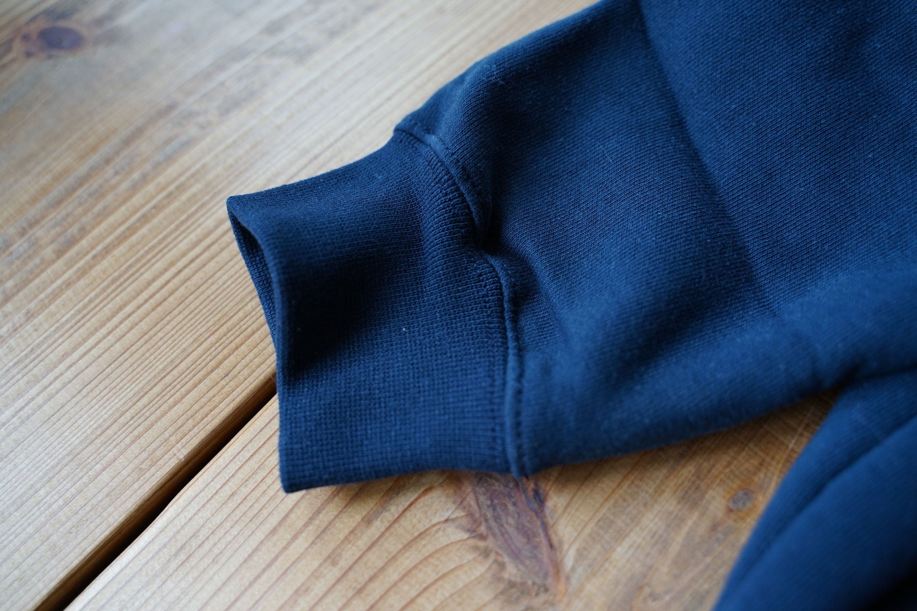 ポケットの左側にはブランドタグ付き。裏起毛素材で暖かく、シンプルなデザインなので一枚あれば重宝します。