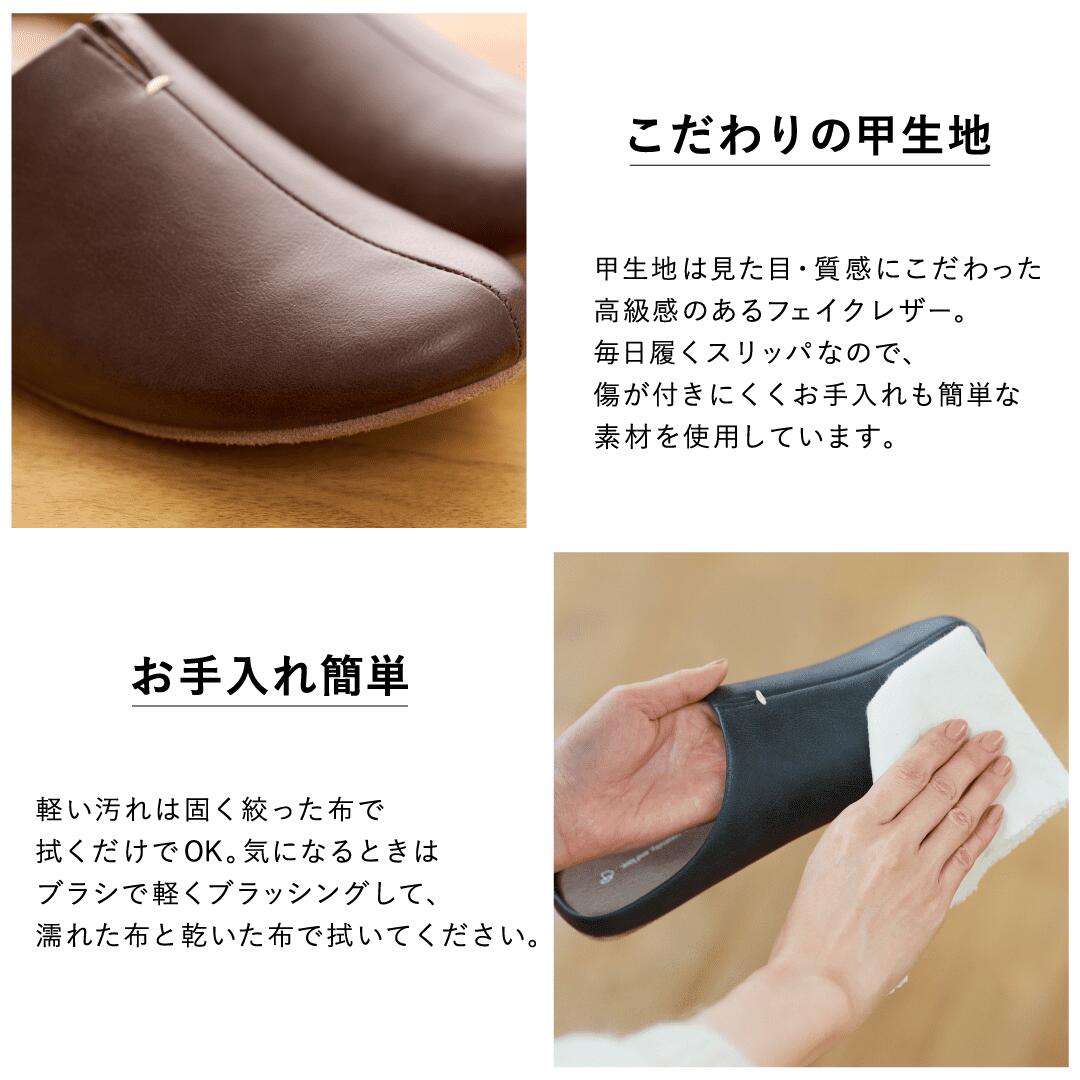 ソールはスウェード調生地を使用。意外と気になるパタパタとした音が出にくいので、マンションなどの集合住宅にお住いの方にもぴったりです。