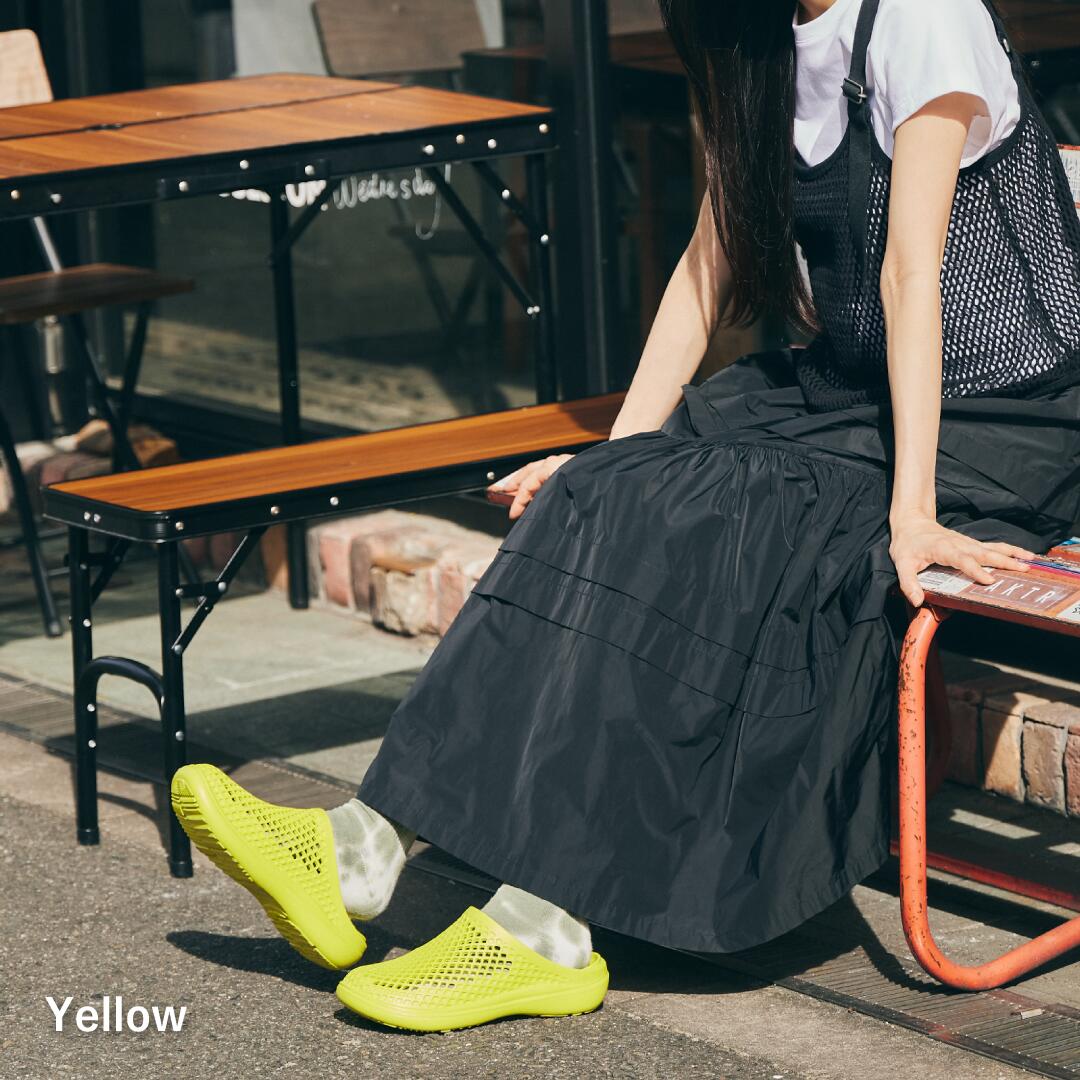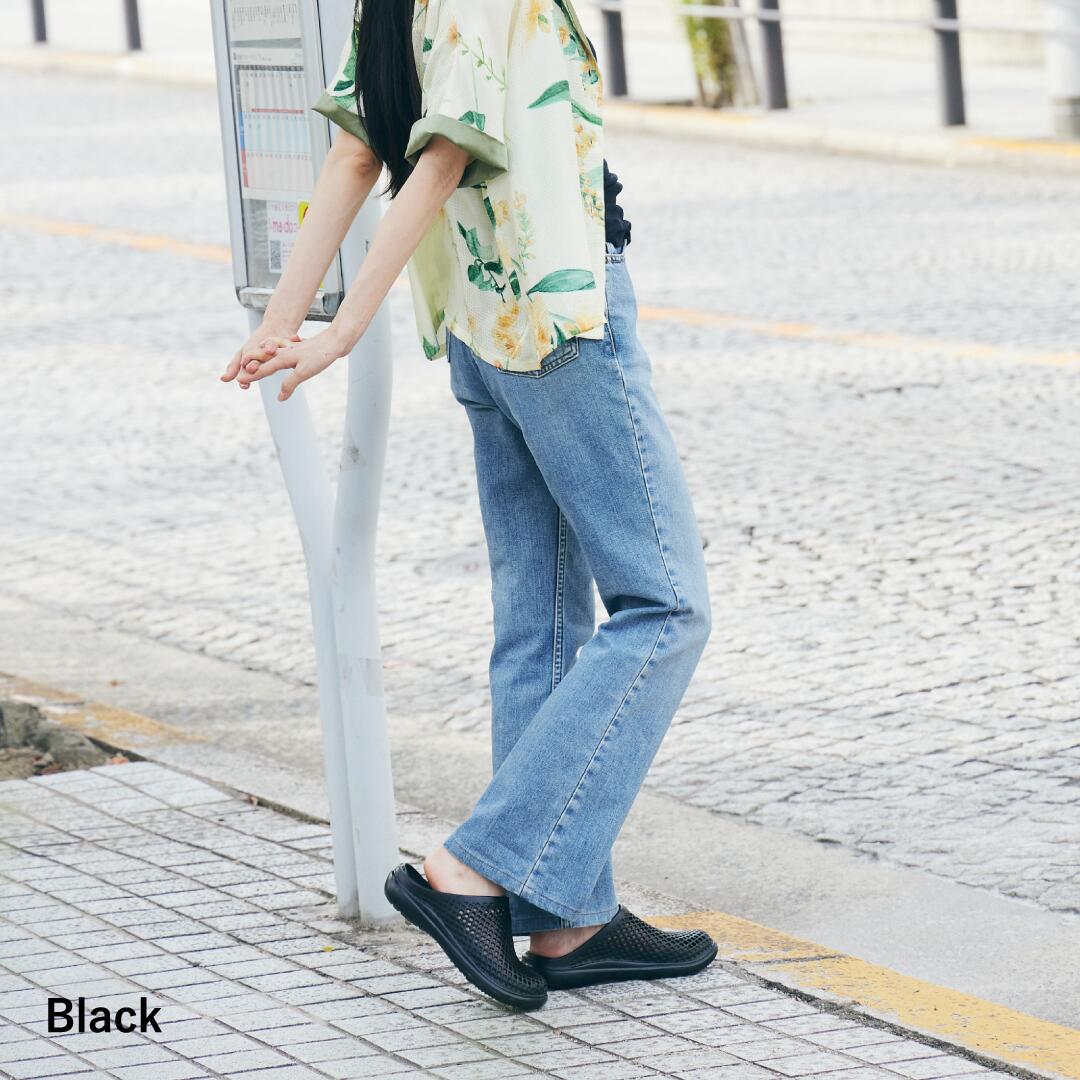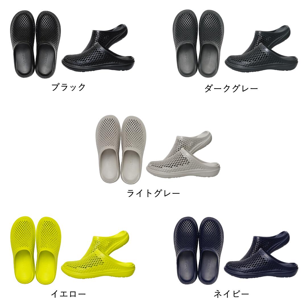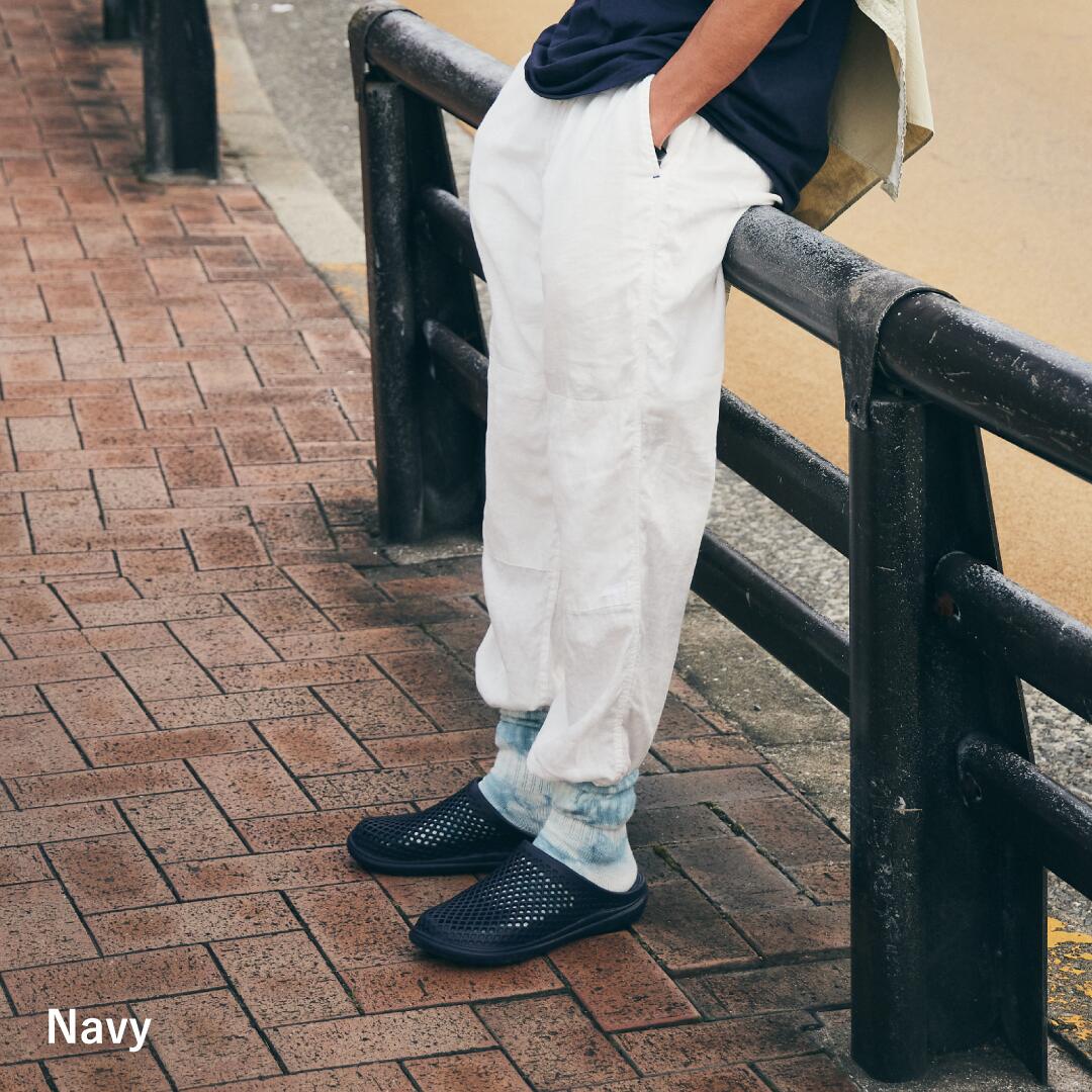 EVA素材を採用しており、柔軟で軽量、かつ適度な厚みのあるソールが歩行時の足裏の衝撃を吸収します。汚れても丸洗いが可能で、乾きやすく衛生面も◎。